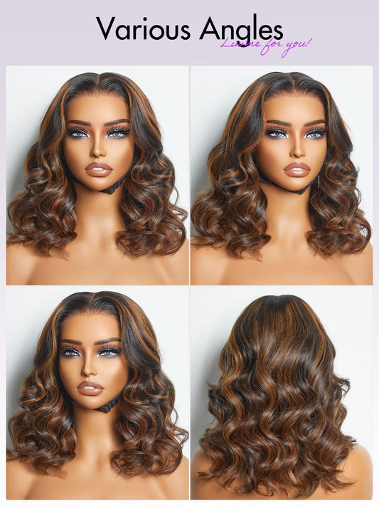 LUVME HAIR 5X5 Brown Highlight Loose Body Wave Glueless Human Hair Wig Pre Cut Lace Front Wig Pre Plucked Ready to Go Long Black Wig For Women (16 Inch & Precut Lace Color 1B/30)
