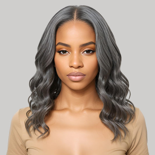 HANASCC 16” Salt and Pepper Wig for Women Glueless Gray Wigs for Black Women Grey Lace Front Wigs Human Hair Pre Plucked Pre Cut 5x5 Gray Human Hair Wig for Women 180% Density