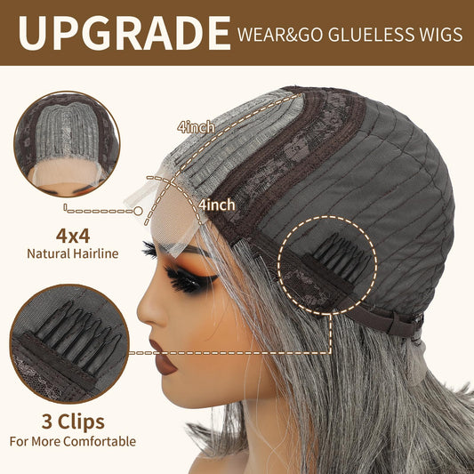 WEEWEE 14" Short Bob Wigs for Women Glueless Bob Salt and Pepper 100% Human Hair 4x4 Closure HD Transparent Lace Front Middle Part Wigs for Women(Salt Pepper)Regular price $79.99 USDRegular priceUnit price / per$79.99 USDSale price $79.99 USDSold out