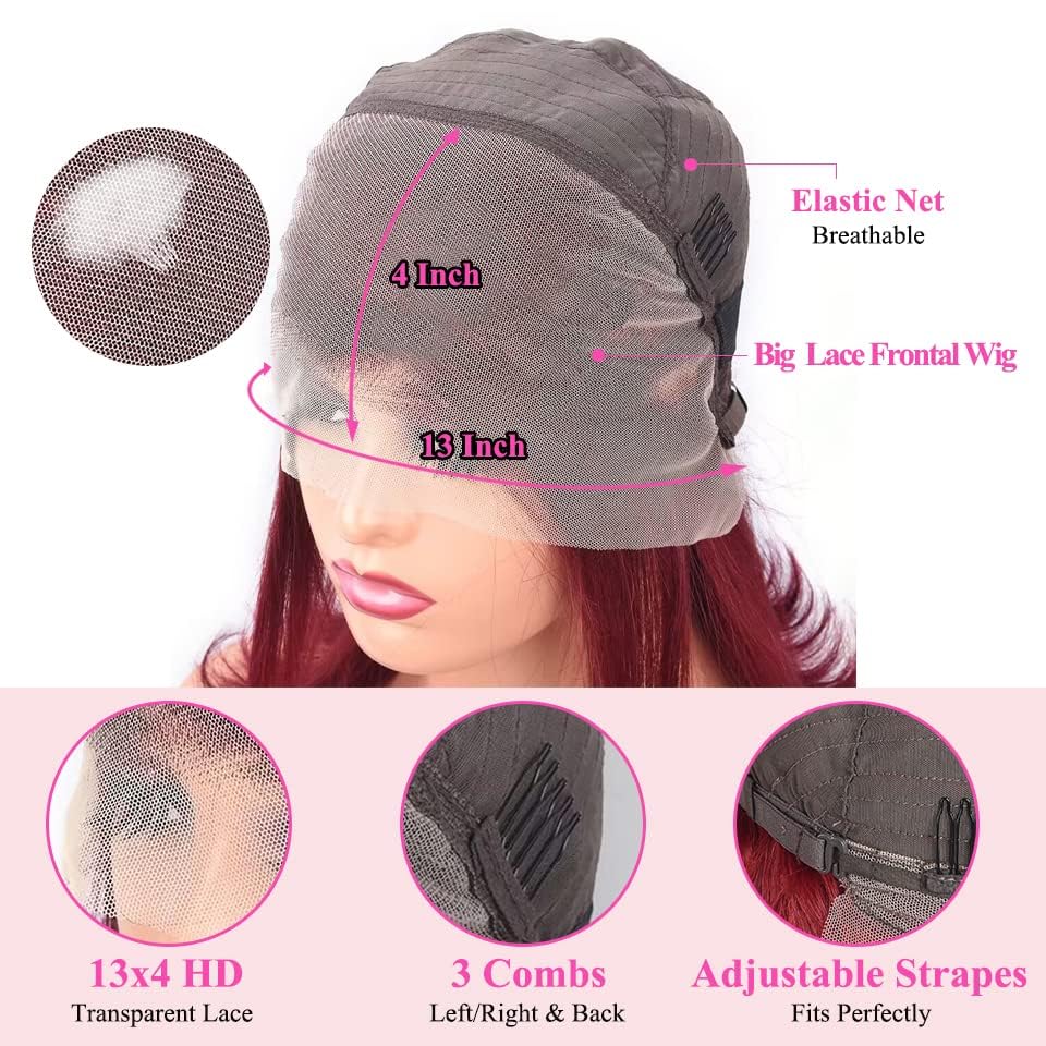 - Burgundylace front wigs bob wig made by straight HD lace front wigs human hair, invisible Lace color, frontal wigs human hair pre plucked bob wig can melt and easy blend in all skin, nude see through natural hairline with baby hair reveal your beauty secret